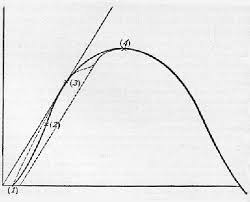 The x-axis is the number of labor hours per day and the y-axis is the apple output per day at a given plant. Region (1) to (2) is the region of increasing marginal product, after point (2) marginal product is monotonically decreasing. We can ignore region (1) to (2) as unstable in the sense that a firm can have more output (and thus profit) with the same marginal product for input levels between (2) and (4). Wicksteed, to give his point sharp definiteness, discusses the region after (4), negative marginal product but of course no rational manager chooses such a level of input usage. Wicksteed’s, and classical theory’s, real point is that there is exactly one volume of input where the marginal product is stably equal to the wage. In this manner, marginal product determines the volume of input and in particular labor usage - Keynes’s second postulate.